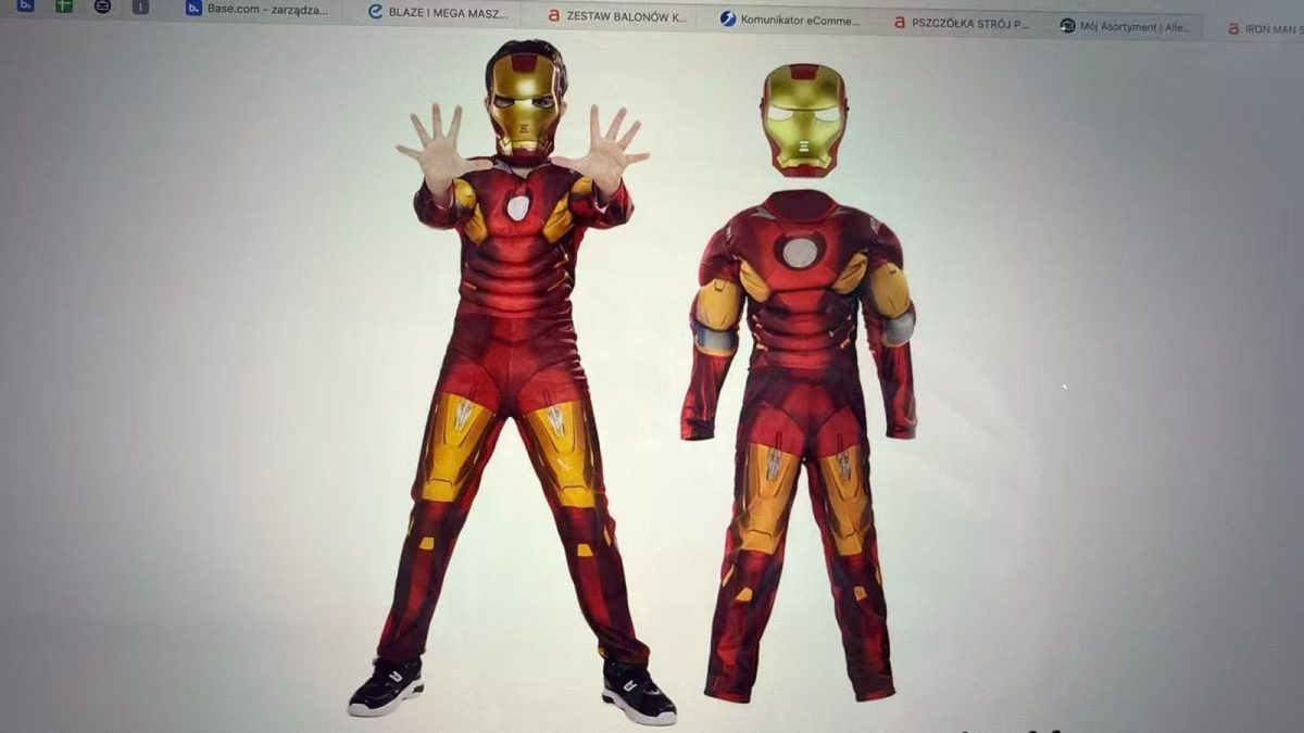 Iron Man Strój Przebranie Maska Mięśnie SIZE 110-120-130 8717729