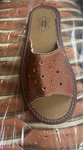 Kapcie POLSKIE ekoskóra ODKRYTE BRĄZOWE 6387206