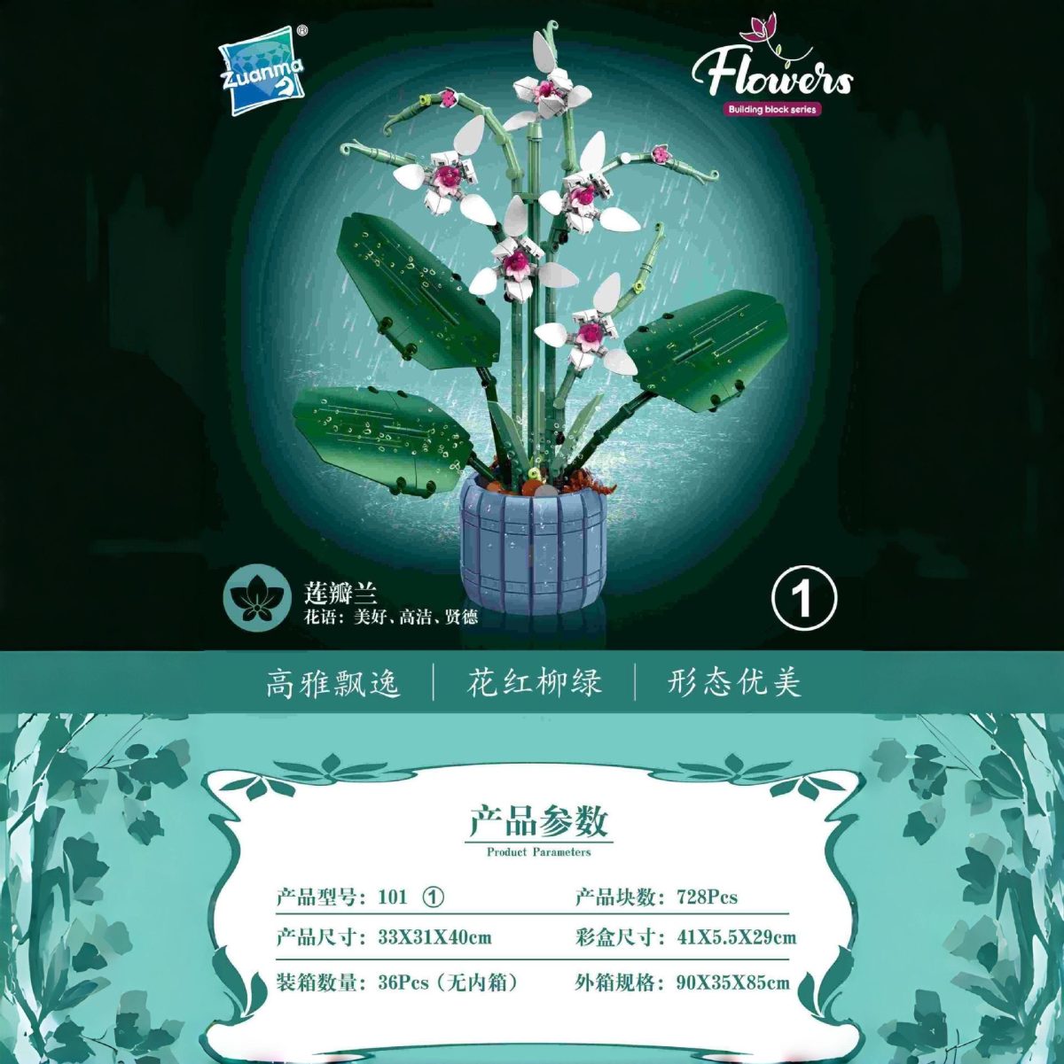 Rozmiar/kolor: Klocki Konstrukcyjne Kwiat Storczyk w Doniczce