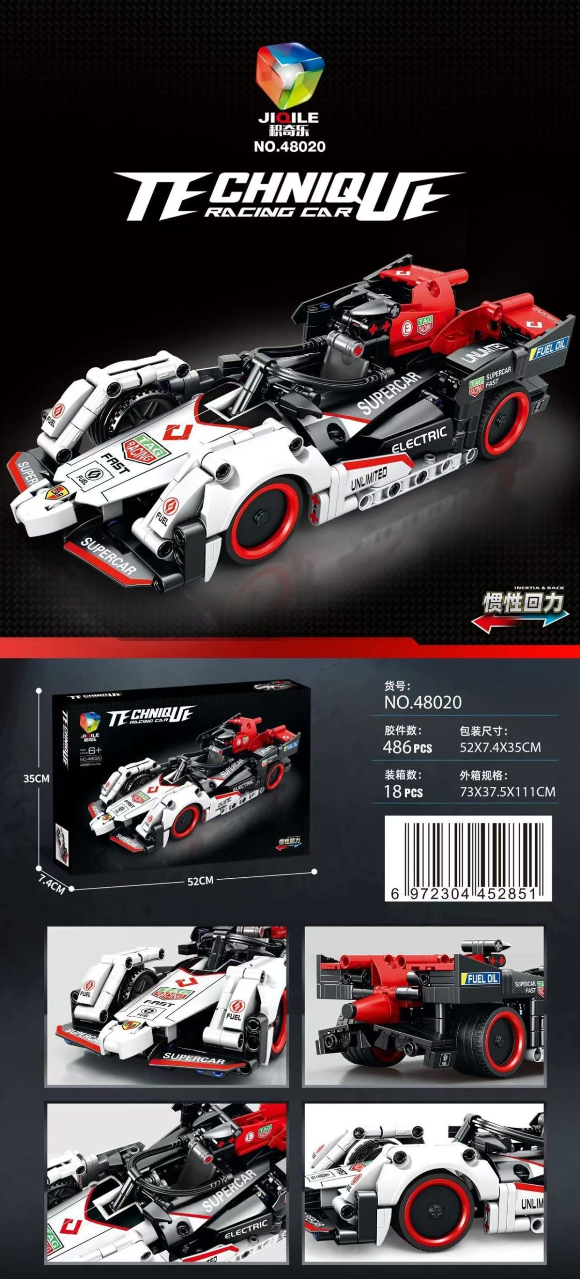 Rozmiar/kolor: KLOCKI LEGO AUTO Technical Speed Racing Car Building Blocks
