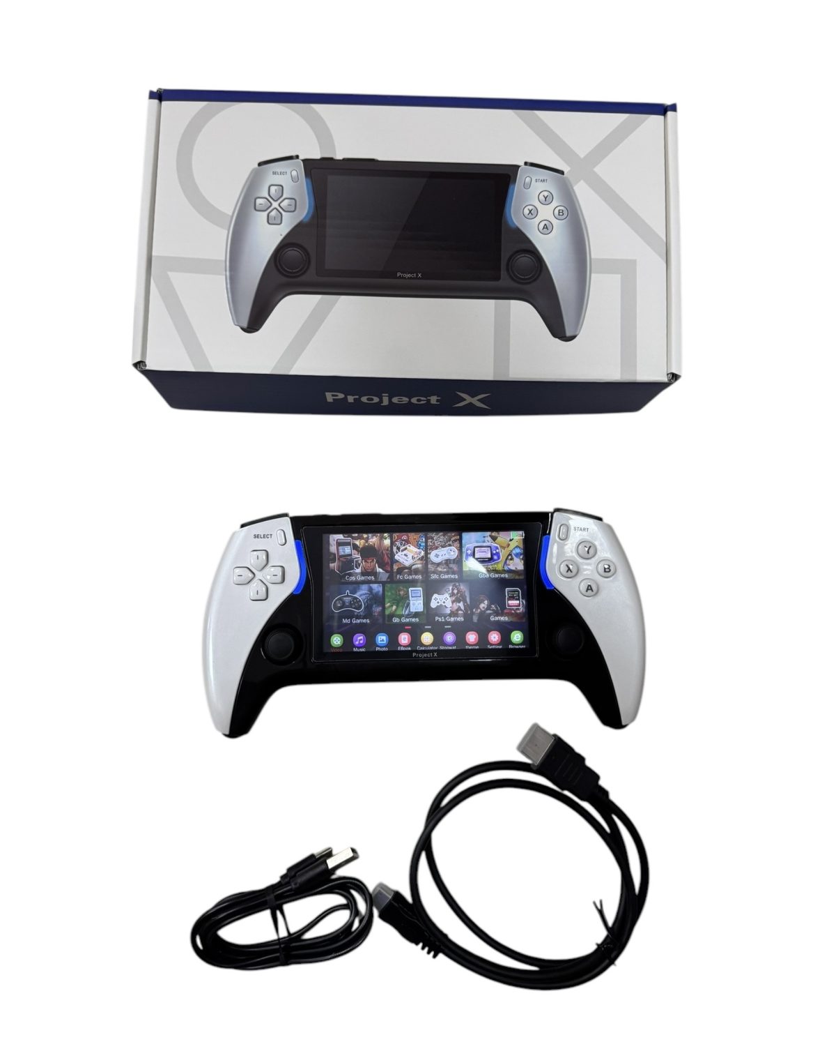 Rozmiar/kolor: Konsola do gier przenośnych PROJECT X obsługuje tryb arcade dla dwóch graczy PS1