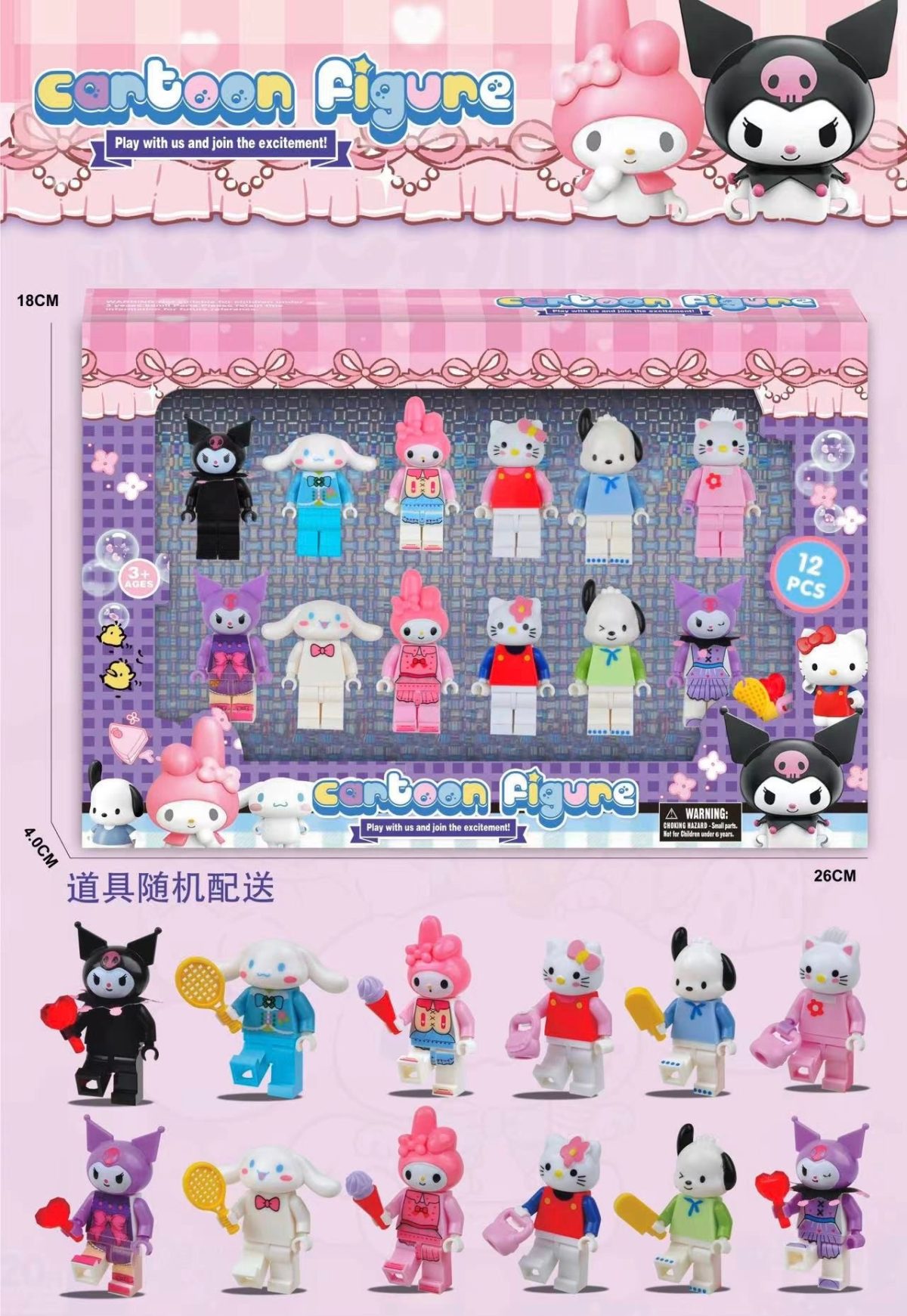Rozmiar/kolor: KUROMI HELLO KITTY FIGURKI 12 SZTUK AKCESORIA ZESTAW