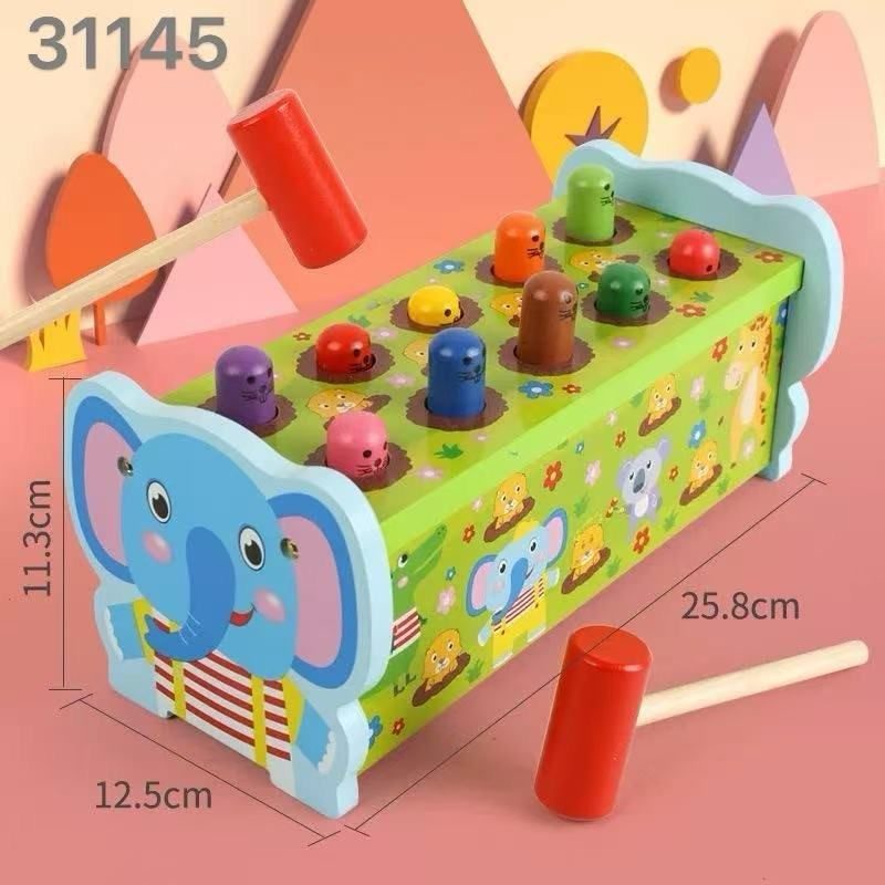 Ławka do bicia_ drewniana zabawka z młotkiem_ sortowanie klocków drewnianych Montessori 8029988