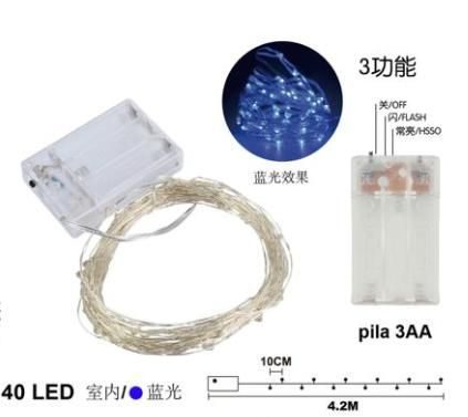 LED LAMPA 100LLED三节电池盒铜丝灯-白光(长亮+闪) 灯距10CM,延长线30CM 7312656