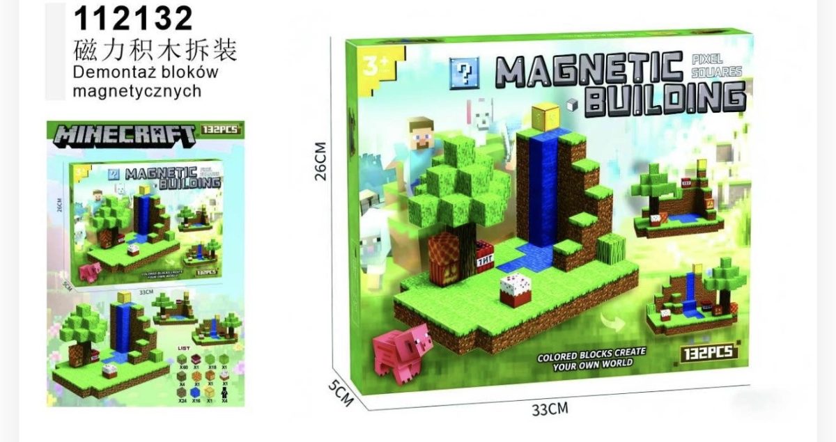 MINECRAFT KLOCKI MAGNETYCZNE 132 PCS