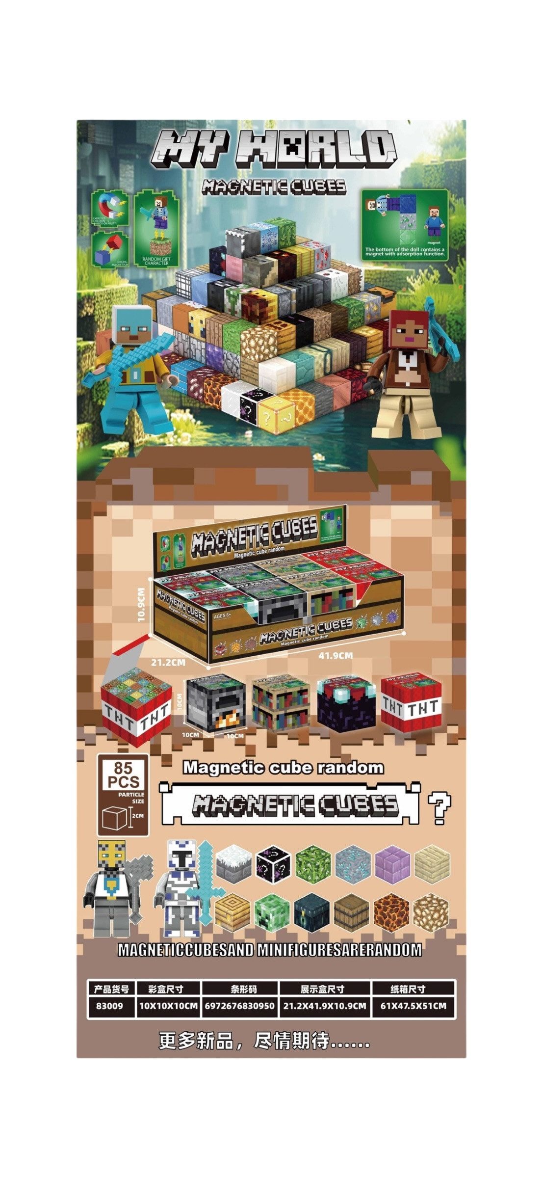 MINECRAFT KLOCKI MAGNETYCZNE (64 EL)