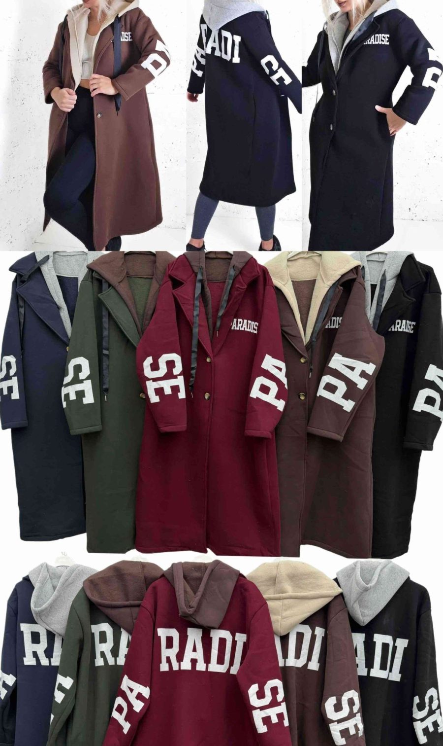 Płaszcze ocieplane z kapturem damskie. Duze rozmiary – Biust do 140cm_ dlugosc 120cm. Produkt włoski (UNI_ 4) 3909545