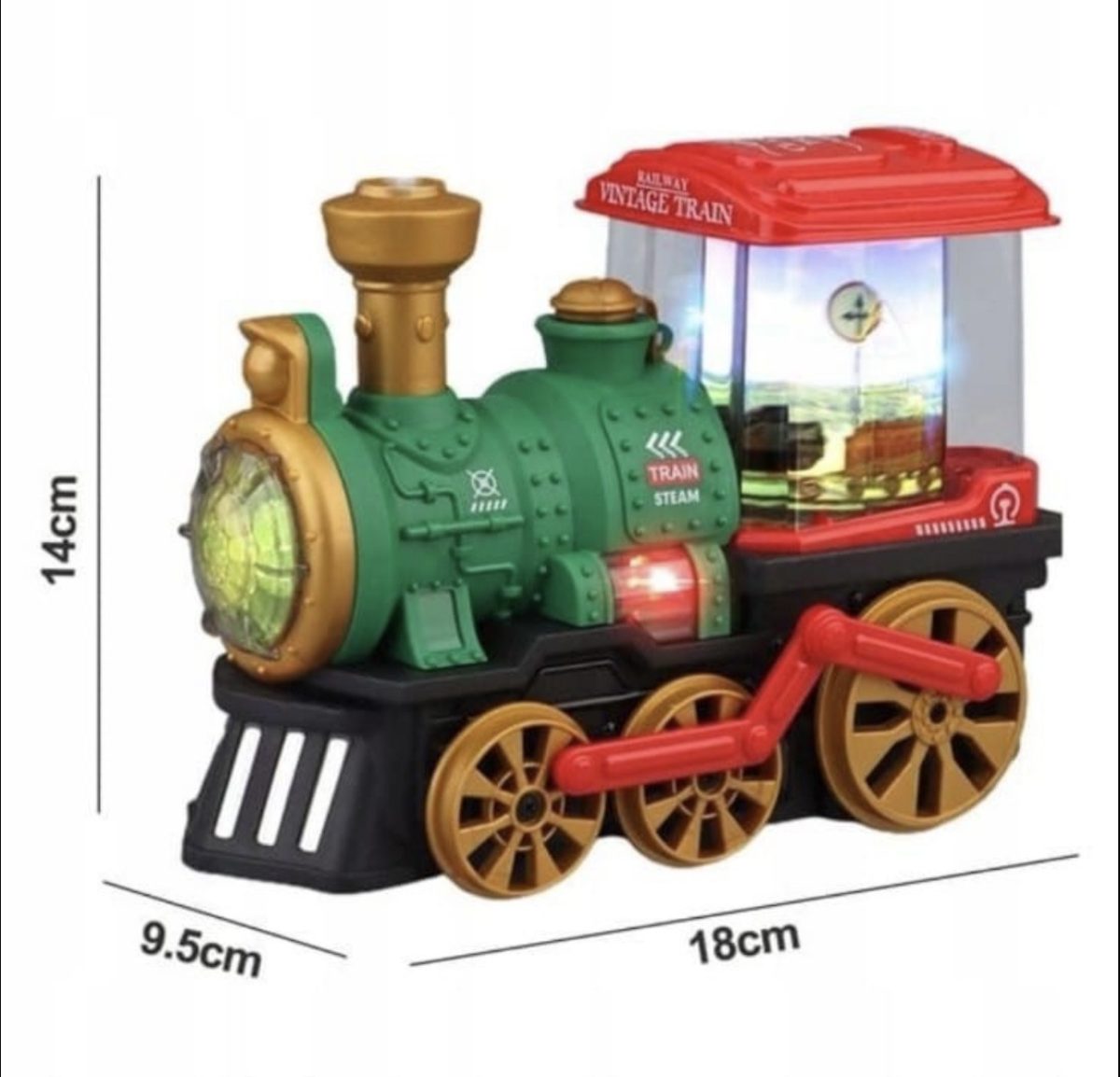 Rozmiar/kolor:           Pociąg_ ciuchcia do zabawy świeci jeździ gra puszcza parę z komina