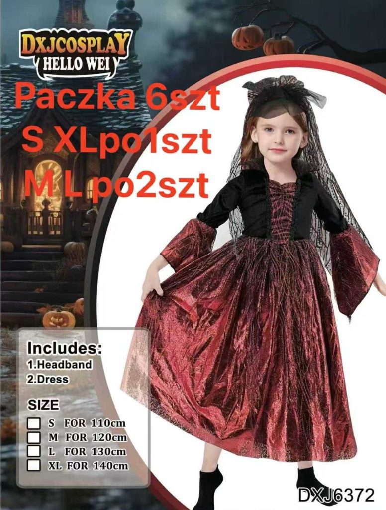 ROZMIAR S-XL PRZEBRANIE KOSTIUM SUKIENKA KROLOWAMPIRZYCA GOTYCKA NIETOPERZY WAMPIR