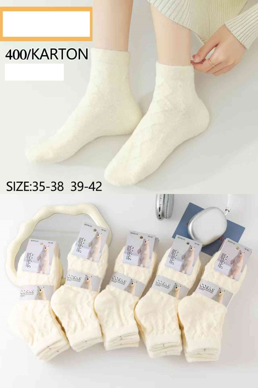 Rozmiar/kolor: Rozmiar w paczce: 35-38/39-42 Pakowanie w paczce: 40 par/paczka Kolory: w miksie romiarów i miksie kolorów. Minimale zamówienie: 40 par Możliwość wyboru kolorów: NIE