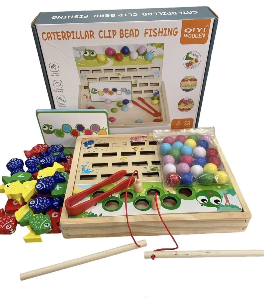 ZABAWKA DREWNIANA CATERPILLAR CLIP BEAD FISHING