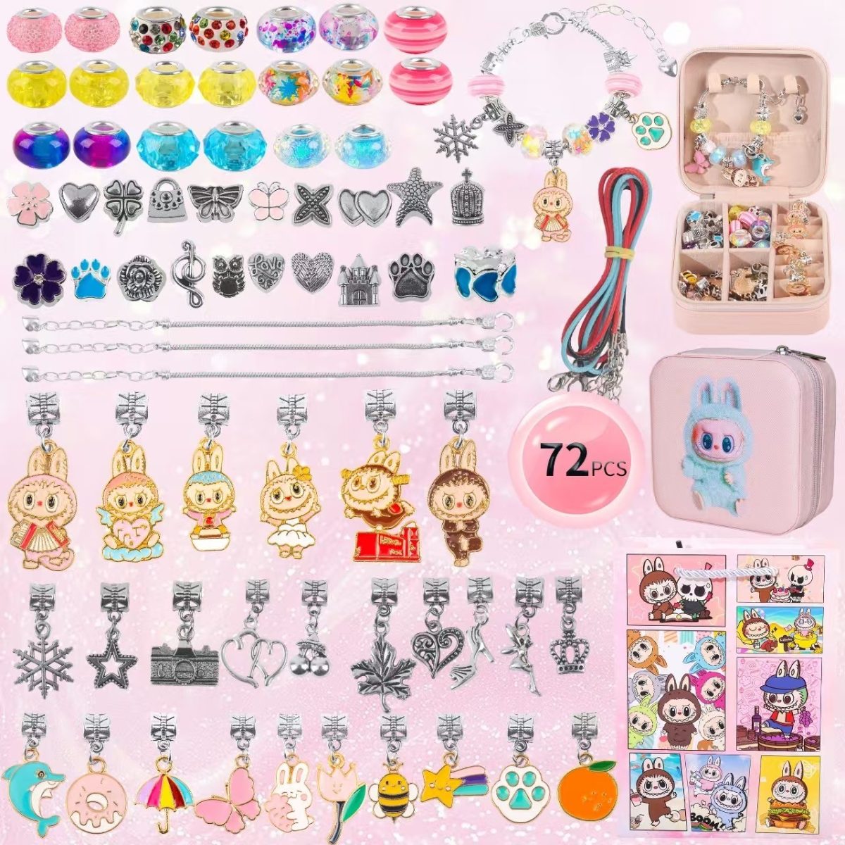 ZESTAW DZIECI DO ROBIENIA BRANSOLETEK LABUBU BIŻUTERII (72 EL)