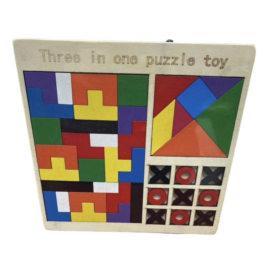 ZESTAW DZIECI GIER LOGICZNYCH TETRIS KOLKO TANGRAM 3W1 DREWNIANYCH