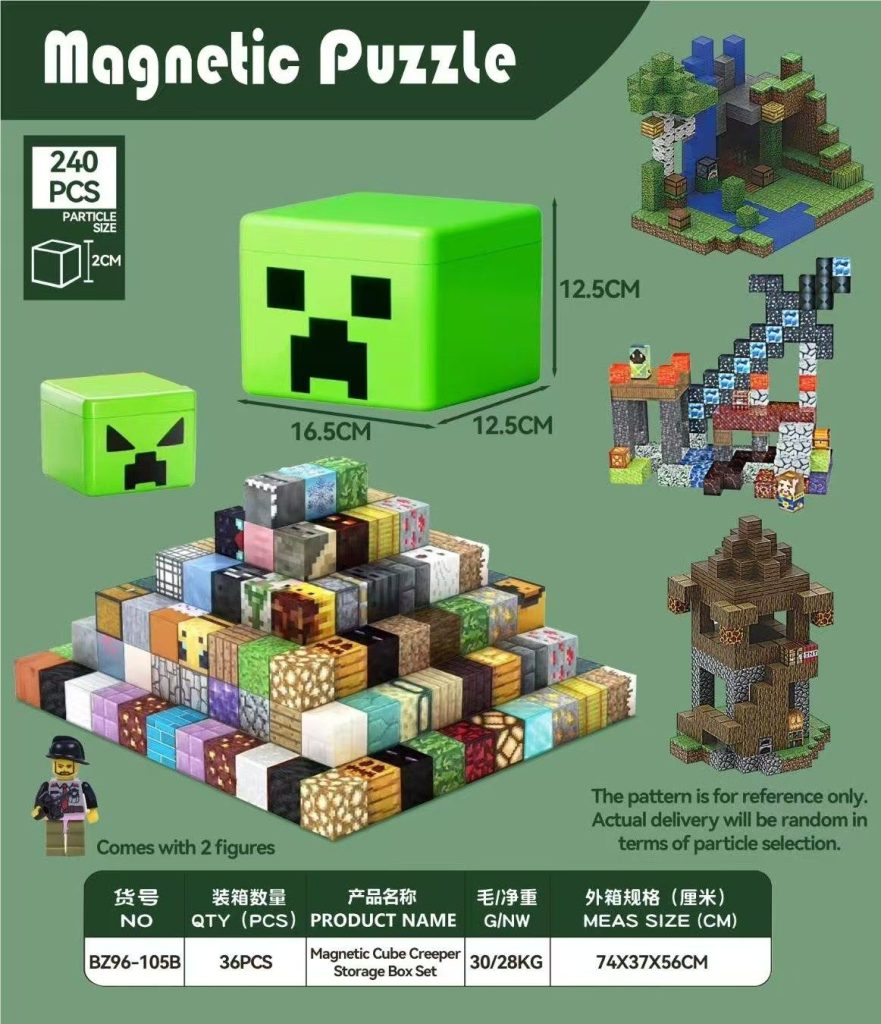 ZESTAW KLOCKI MAGNETYCZNE KONSTRUKCYJNE PUDELKU 240 EL OZDOBNYM TNT